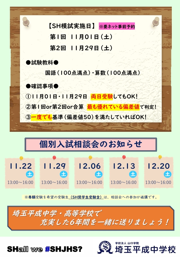 【小学6年生対象】SH奨学生入試のお知らせ