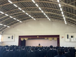 これから始まる冬休みの過ごし方について話がありました。生活リズムを大切にしながら、自分の時間を有意義に使ってほしいというメッセージが伝えられました。