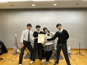 2月、第1学年を対象とした大会「ルーキーズフェス」が開催され、本校軽音楽部からは2バンドが出場しました。
