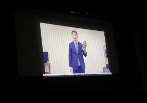 卒業生を送る会では、在校生からのビデオレターを上映しました。